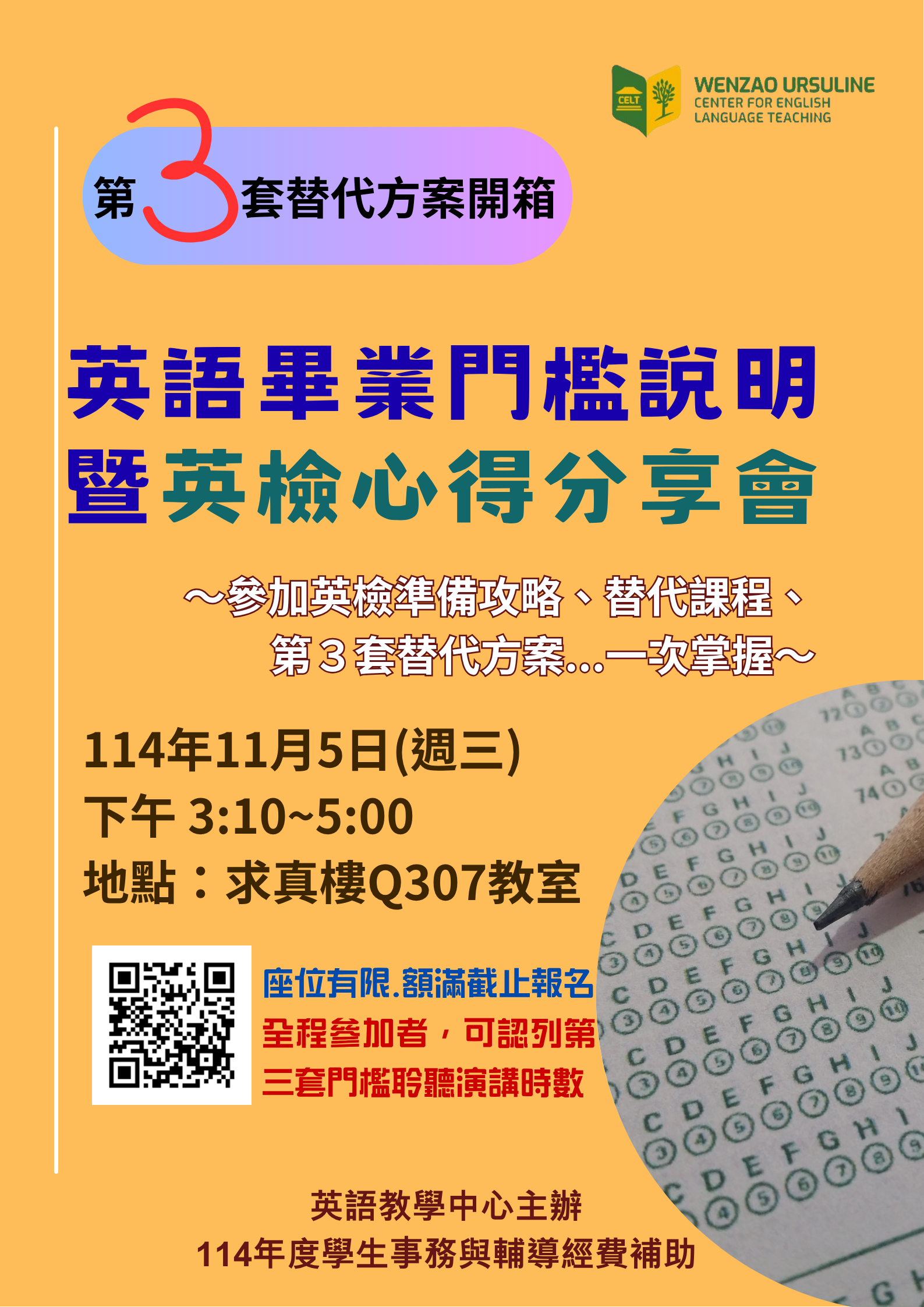 【114-1英檢心得分享暨英語畢業門檻說明會】歡迎報名,只此一場請勿錯過~