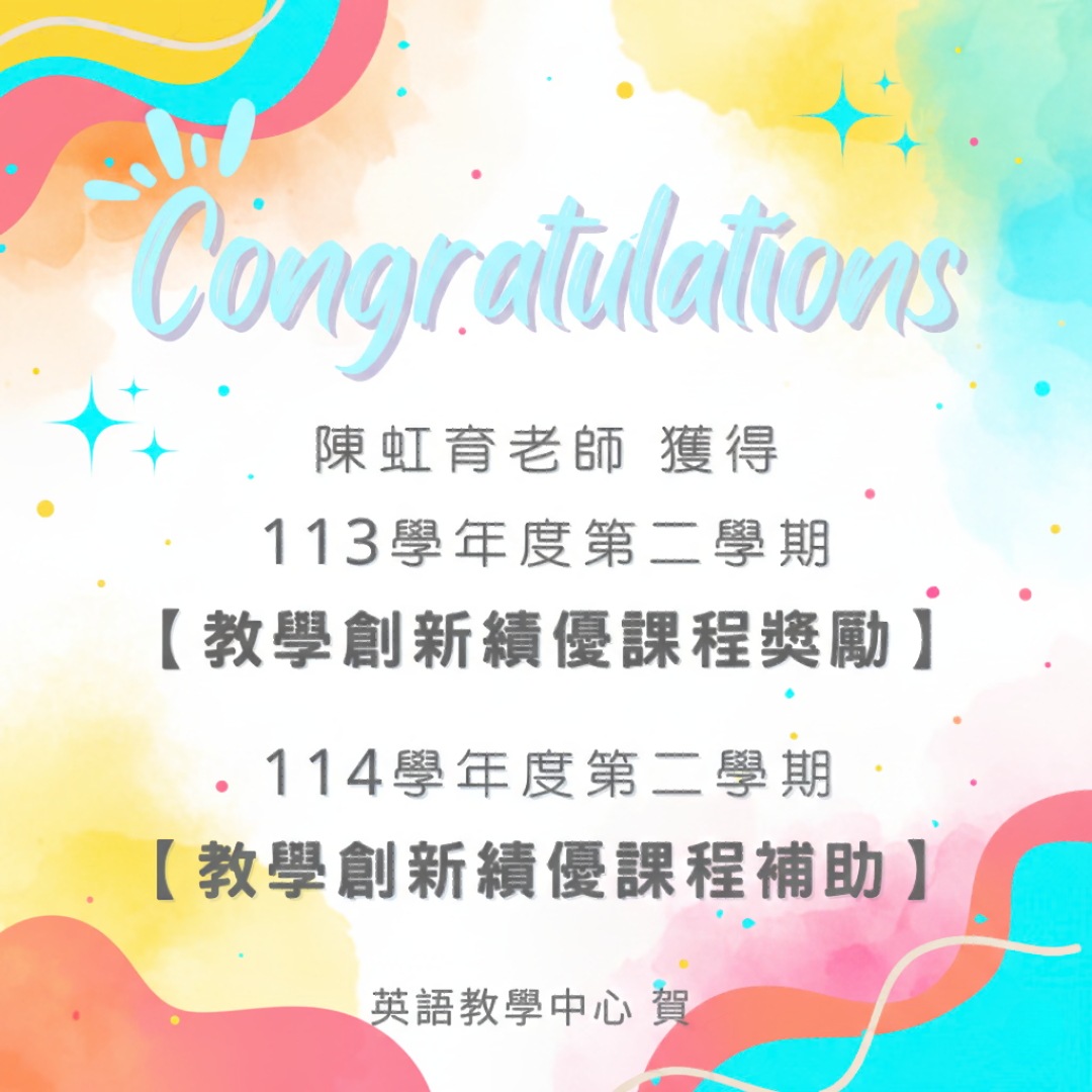 《賀》英語教學中心陳虹育老師獲創新課程補助及獎勵