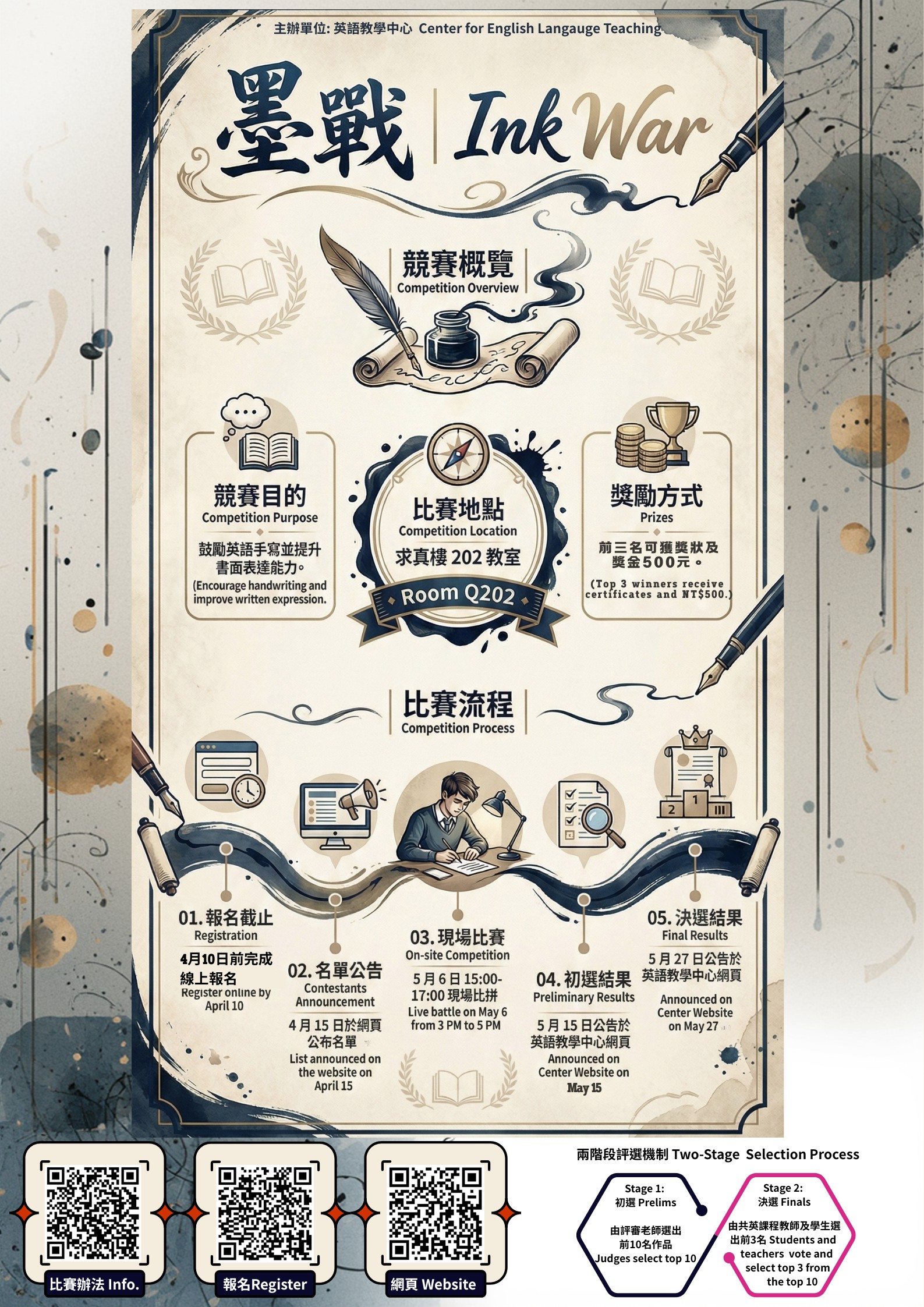 (114-2校內比賽) 歡迎報名~~墨戰:英語手寫字跡大比拼